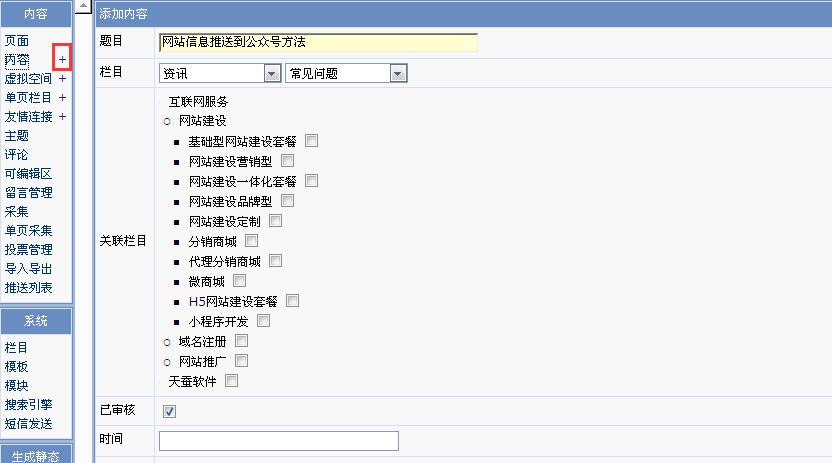 2.保存后,文章自動跳轉(zhuǎn)。(注:如果沒有自動跳轉(zhuǎn)的點擊“內(nèi)容”二字,會到此頁面。) 3.點擊要推送文章后面的“添加推送”。(注:添加推送成功后就不會顯示添加推送。)